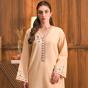 Take this cream acrylic embroidered shawl in the picture above as a perfect example. It is a timeless winter staple that effortlessly complements both eastern and western attire. Its subtle color and intricate design make it a versatile addition to your wardrobe, perfect for anyone who values understated elegance.